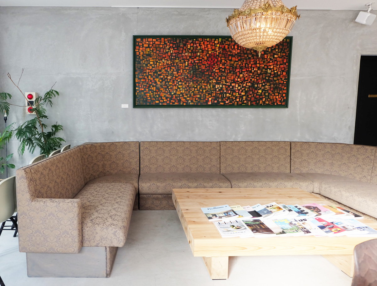 扉を開けるとまず目に飛び込んでくるのが、こちらの大きなソファ。ホテルのロビーさながらの空間で、居心地も抜群。カレー店とは思えないほど、センスの良さが光ります。