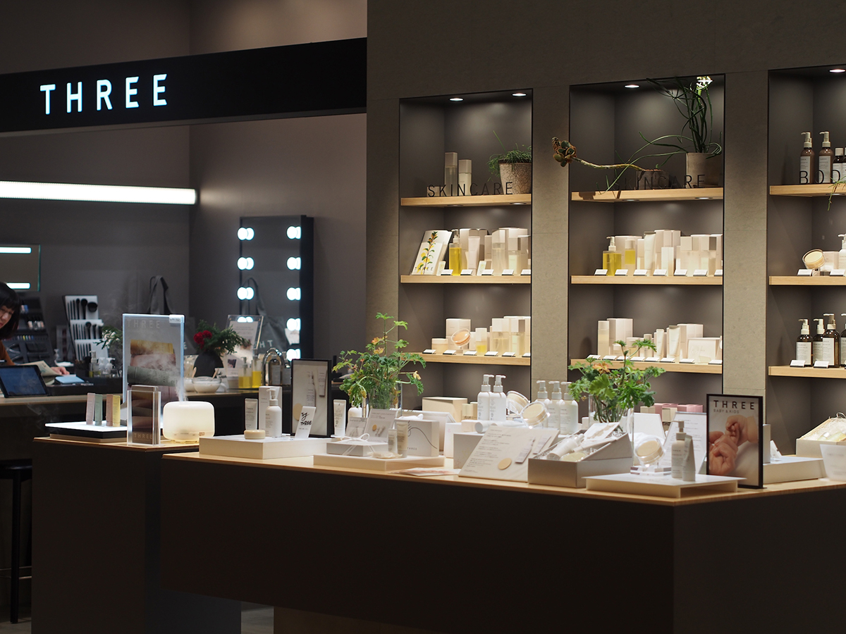 デリカテッセンのお隣には、カウンセリング対応のTHREEショップも。スキンケア、ヘアケア、ボディケア、メイクアップなどフルラインナップで登場。お食事やお茶の後に立ち寄ってみて。