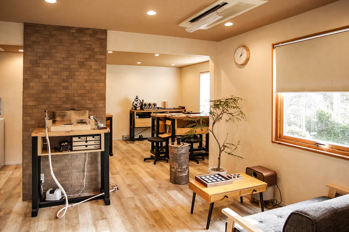 店内はあたたかみのある木材を使用したナチュラルな雰囲気。シルバーリング作りコースは10時~、14時~の1日2部の予約制。最大6組12名が一度に体験でき、お客さん1~4名に対してスタッフ1名がついて丁寧にレクチャーしてくれます。