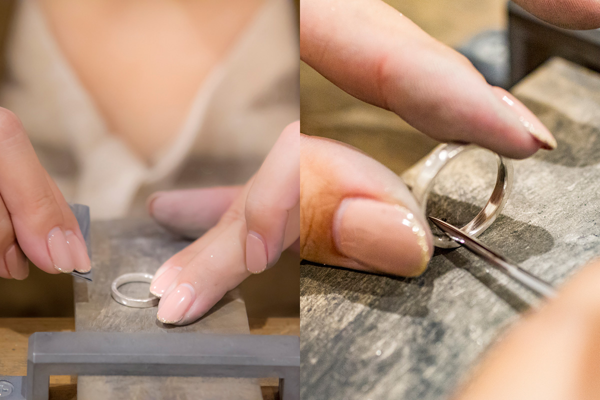 作ったリングを常に身に着けるか、着けはずしをするか、指がむくみやすいかどうかなどに合わせて、プロが最適なサイズを選んでくれるので、安心。