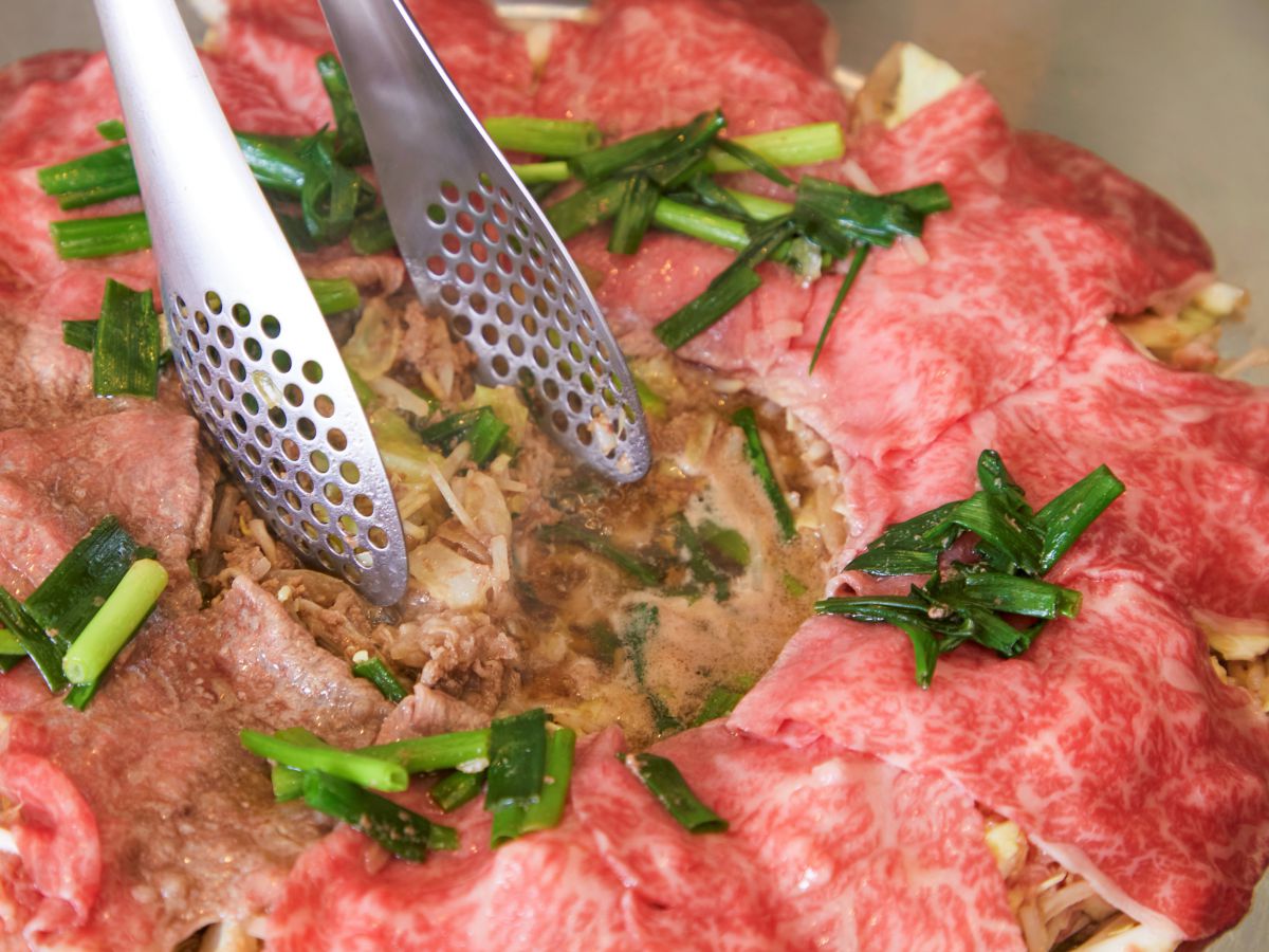 特製スープの中に、あれだけお肉の脂が溶け出したにもかかわらず、脂っこくなくクセのない味に仕上がったのは、あっさりとした脂をもつ「名人和牛」を使っていることと、野菜がたっぷり入っているからなんです。