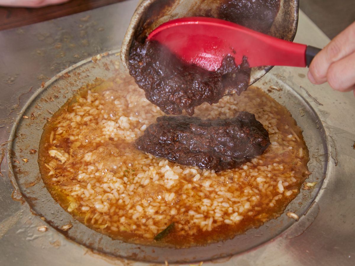 そうこうしているうちに和牛すじ黒カレー雑炊の完成です!あたり一面に漂うカレーの香りに幸せを感じながら、いただきましょう♪