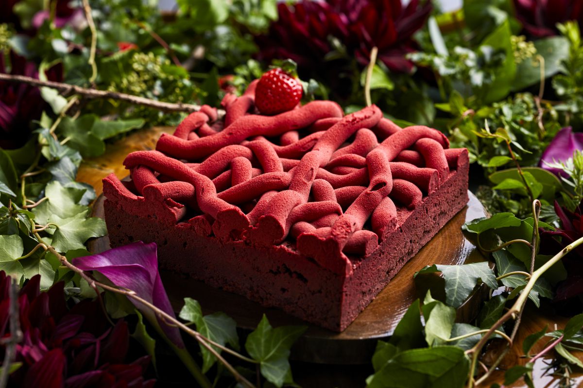数あるスイーツの中で、最も製作に時間をかけたというのがこちらの「ストロベリーブラウニー」。絡み合った樹木の根をイメージした見た目と、深いチョコレートのほのかな酸味を感じるいちごがベストバランスなスイーツです。濃厚な味わいを楽しんでみてください。