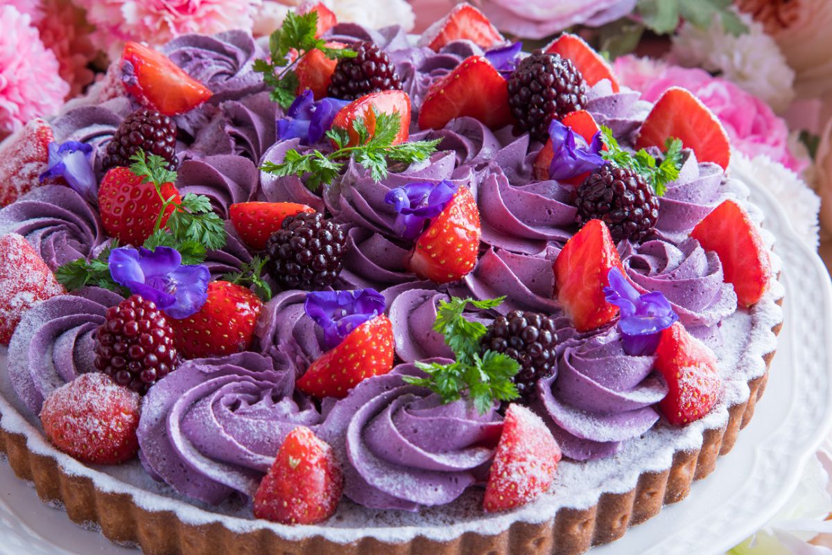 紫色のクリームのこちらは、小悪魔ストロベリータルト。ベリーの甘酸っぱさに、クリームの甘さがベストマッチ。大人な色合いも素敵なスイーツです。