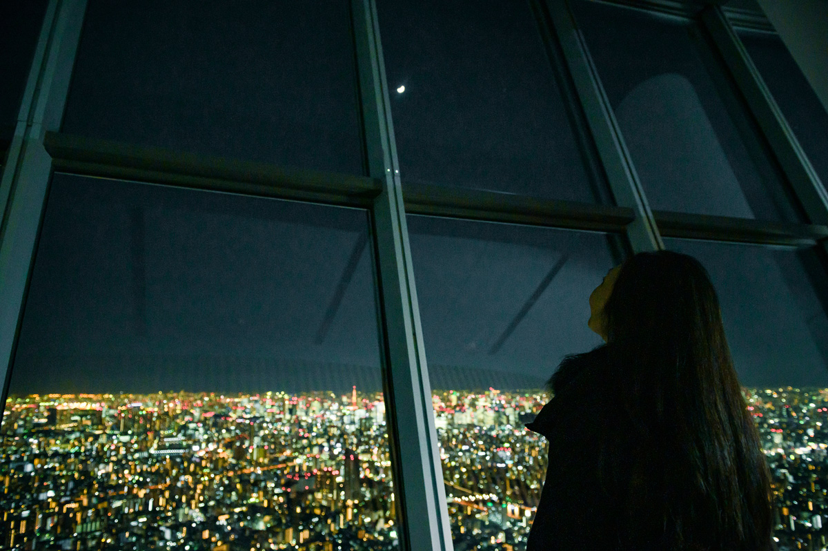 冬の時期ならではの煌めく夜景の中、天望デッキ&天望回廊でしたい、月のパワーをさらに受け取るための開運アクションをKeikoさんに教えてもらいました。