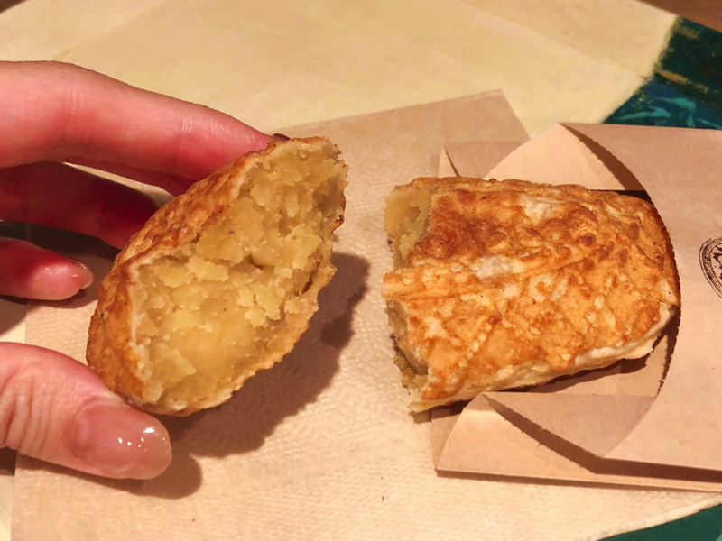 ほかの2種類の「デボレー」は小麦粉で作られたサクサク食感を楽しめます。「ミート&チーズ」(390円)はイタリア・ナポリ地方のクロワッサンのような焼き菓子「スフォリアテッラ」の生地を使用したミートパイ。毎日店頭に並ぶとは限らないため、出会えたらラッキー!