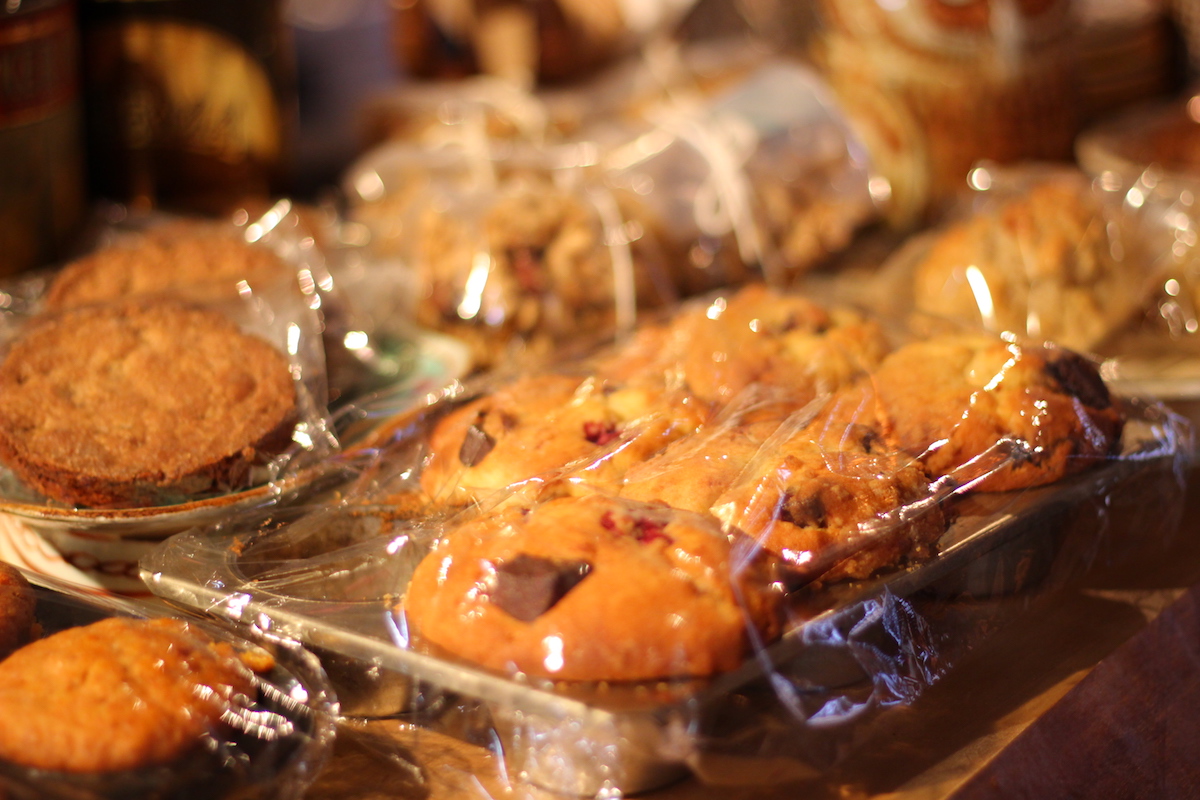 店頭には自家製マフィンやスコーンなどおいしそうなベイクドスイーツもずらり!あれもこれもとついつい食べ過ぎてしまいそうです。