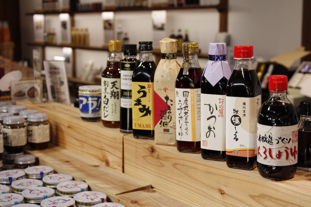 建物内には、醤油や糀、とれたての野菜など、たつのの温暖な気候と良質な水に育まれた、地元食材のごちそうが楽しめるカフェレストラン、日本一のシェアを誇るそうめんや地元企業8社の醤油などを販売するショップ、町が誇るたつのレザーをはじめ、醤油や糀のワークショップや写真展などを開催するギャラリーがあり、それぞれのアプローチでたつのの魅力を伝えています。
