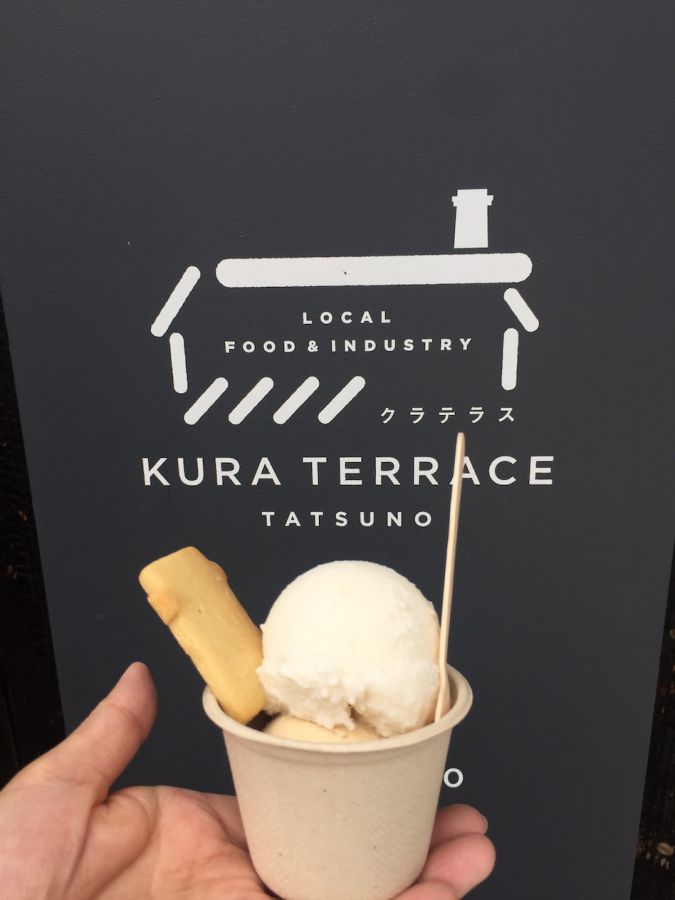 食後には、醤油、みそ、糀など、地元食材を使ったジェラート(シングル380円~)もおすすめです。