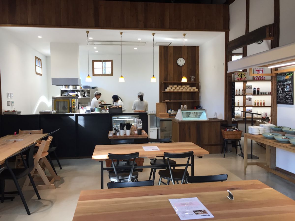 天井の高いゆったりとした雰囲気のカフェレストランでは、醤油、そうめんをはじめ、地元の農家さんが作る野菜を使ったビュッフェスタイルのランチを2018年秋からスタート。