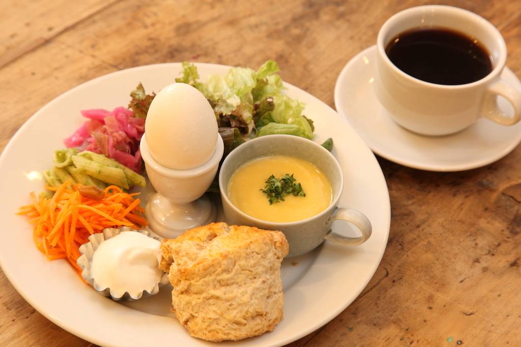 店主の相原さんは、店舗のメニュー開発などを手掛けてきた、フードコーディネーターでもあります。食のスペシャリストが作る料理は、味はもちろん、美しい盛り付けや色合い、うつわのセレクトもさすが。サーブされた瞬間から、ワクワクのモーニングタイムが過ごせます。