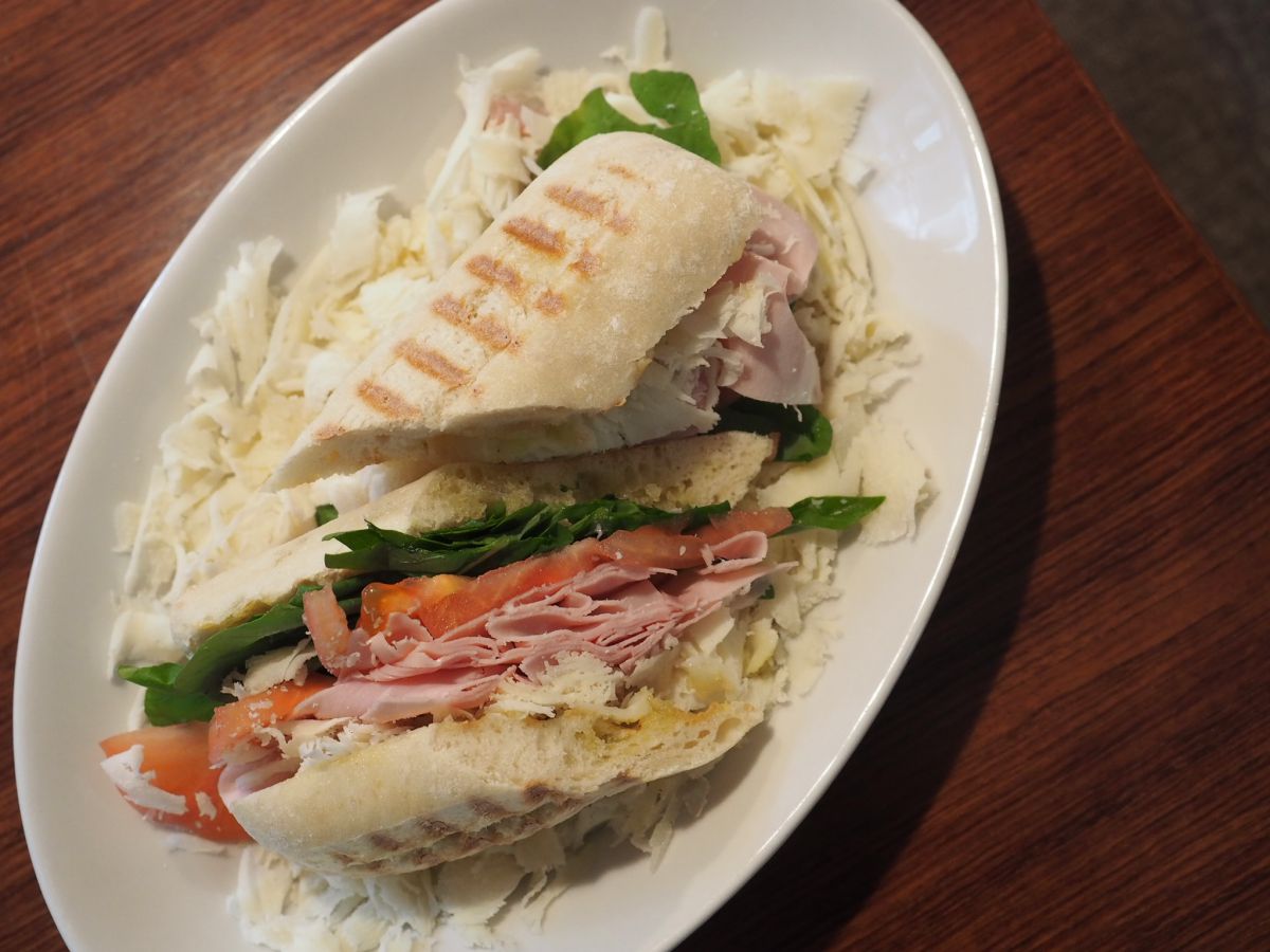 続いてこちらは「ラスパドゥーラとトリュフコットハムのパニーニ」(1600円)。お馴染みであるパルミジャーノレッジャーノと似たベラロディの熟成が若いフレッシュなチーズを使用します。