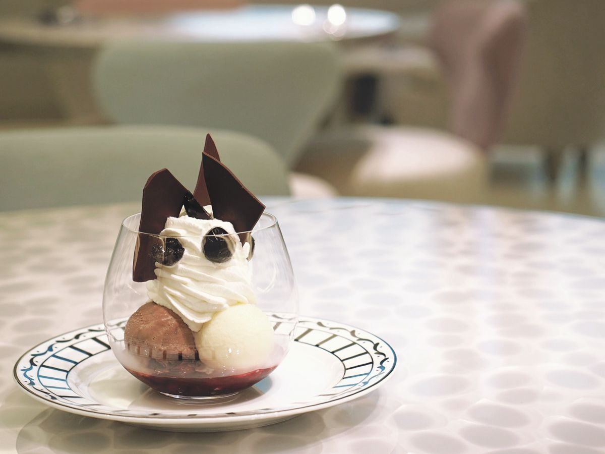 チョコレートマニアのあなたにおすすめしたいのは、チェリーとチョコレートの甘くほろ苦いコンビネーションが楽しめる「クープ グラッセ フォレノワール」(2600円)です。