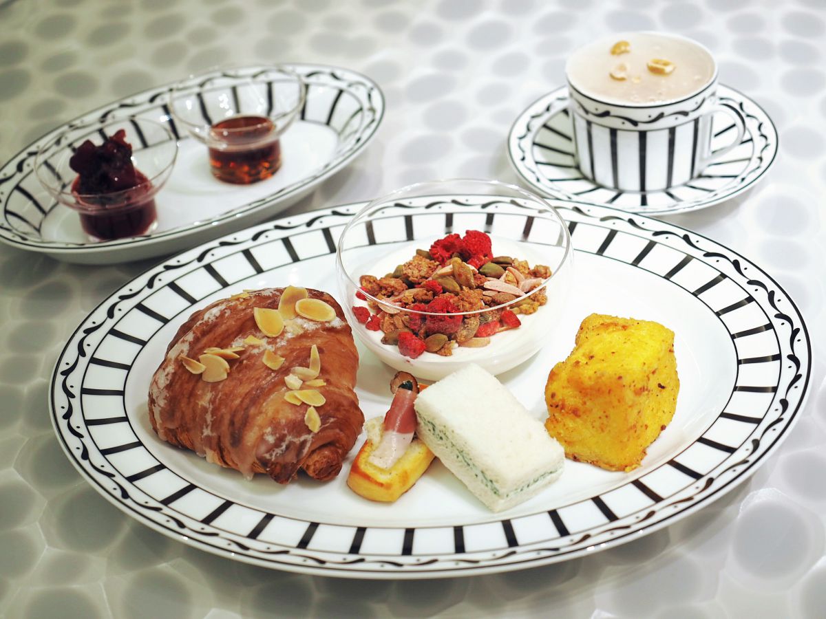まずは、ゆっくり過ごす朝にぴったりな朝食セット「プテイ デジュネ セット」(2900円)。甘くサクサクなクロワッサンや、ふっくらとした一口サイズのフレンチトースト、そして小さなサンドイッチが、フランボワーズ入りのグラノーラとセットになっています。10時半からの注文になるので、休日のブランチとしてもオススメ!