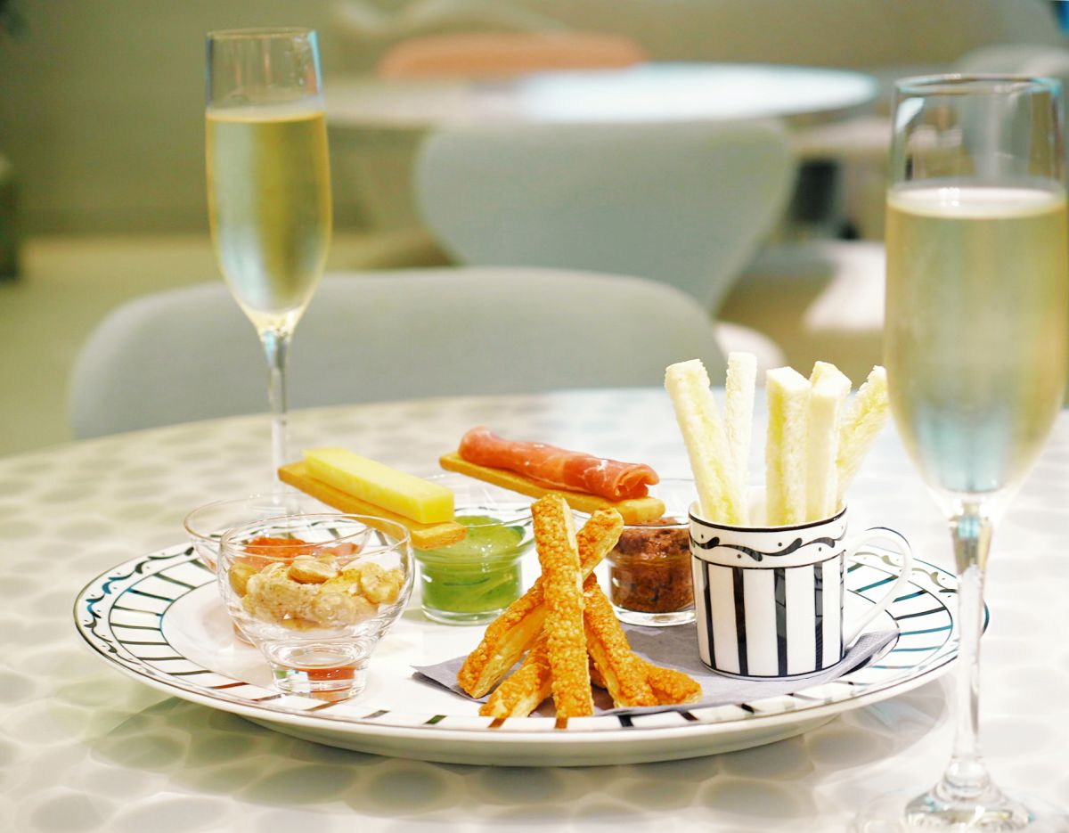さて、今日はよく働いた!一杯飲んで帰りたーい!そんなあなたはぜひ「アフターワークギンザ」(2600円)を注文してみては?スティック状のトーストやクラッカー、バジルやトマトをたっぷりブレンドしたディップに、フロマージュ、そしてナッツがセットになっています。シャンパンを追加でオーダーして、大切な人と贅沢なアフターファイブを楽しんでみてはいかがでしょうか?