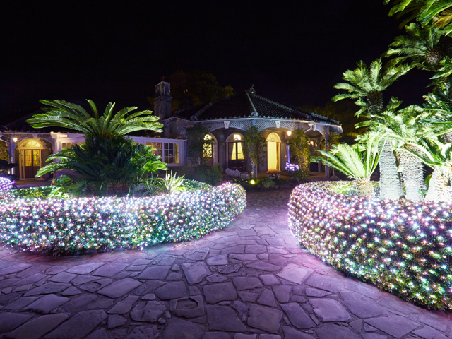 9棟の洋風建築を移築・復元した歴史ある建物はもちろん、長崎の街を見下ろす高台からの絶景が楽しめるスポットです。注目は、夜間まで開園される冬限定のイルミネーションイベント。カラフルな光に彩られた敷地内、有名な長崎の夜景、どちらも幻想的でうっとり見入ってしまうほど。内部をゆっくり見学してから夜景を楽しめるよう、イルミネーション点灯の少し前に入園するのがおすすめです。