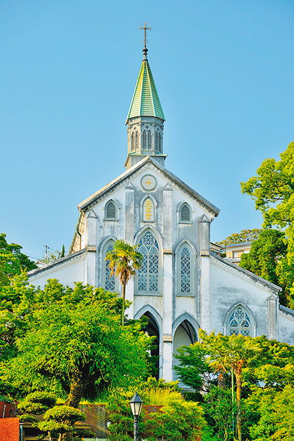 幕末に、潜伏キリシタンが信仰を告白した「信徒発見」の舞台として知られる日本最古の木造教会。世界遺産や国宝にも指定されています。ゴシック調なのに、日本語で掲げられた「天主堂」の文字、瓦葺きの純和風の屋根、漆喰の壁と、日本っぽさがちりばめられた建築は、えもいわれぬ美しさ。聖堂内のステンドグラスや調度も見応えたっぷりです。