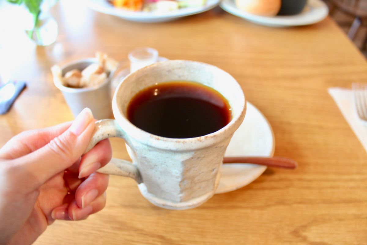 ランチセットにプラスできるコーヒーは、一杯一杯ていねいにハンドドリップで淹れられています。器には、望月さんの地元でもある栃木県の益子焼が使われているんです。素朴な手触りが、心穏やかな気持ちにさせてくれます。