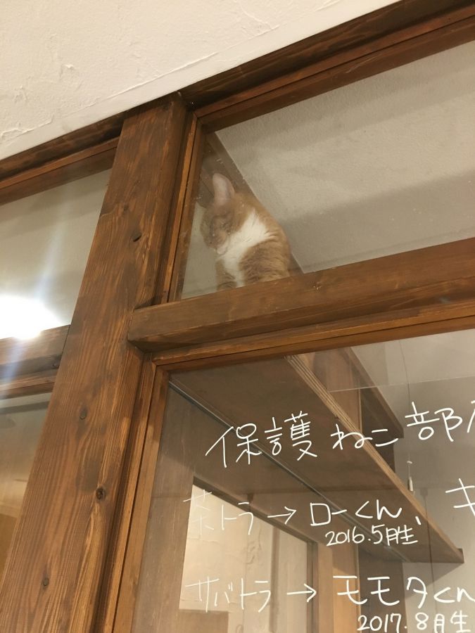 保護ネコ部屋があるとはいえ食堂ですから、人とネコとの空間はガラスで仕切られていて触れ合うことはできません。コネコネしたくなる気持ちはグッと抑えて、食事と観察を楽しみましょう。