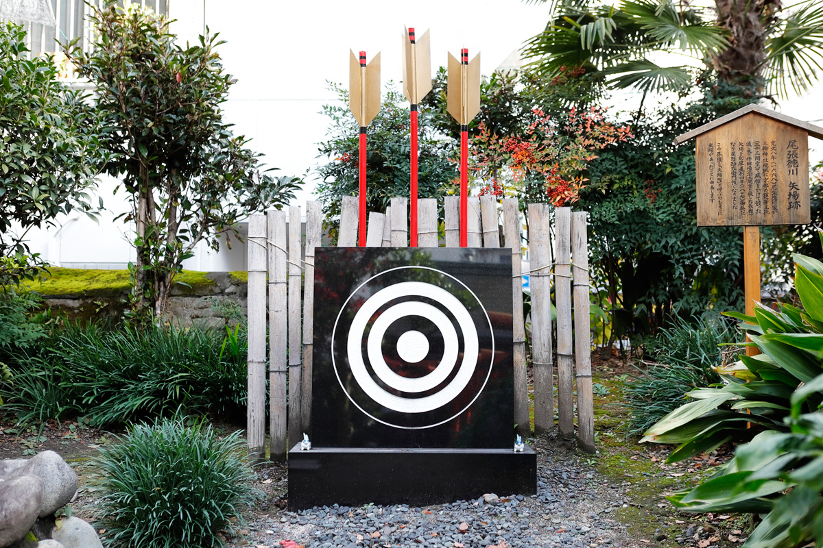 寛文8年(1668)には、尾張徳川家の通し矢の修練場が境内に造られました。これをきっかけに、神社のある界隈は“矢場町”と呼ばれるように。この地名は現在でも地下鉄の駅名や交差点名に採用されています。境内には今も矢場跡があったことを表す石碑がありますよ。