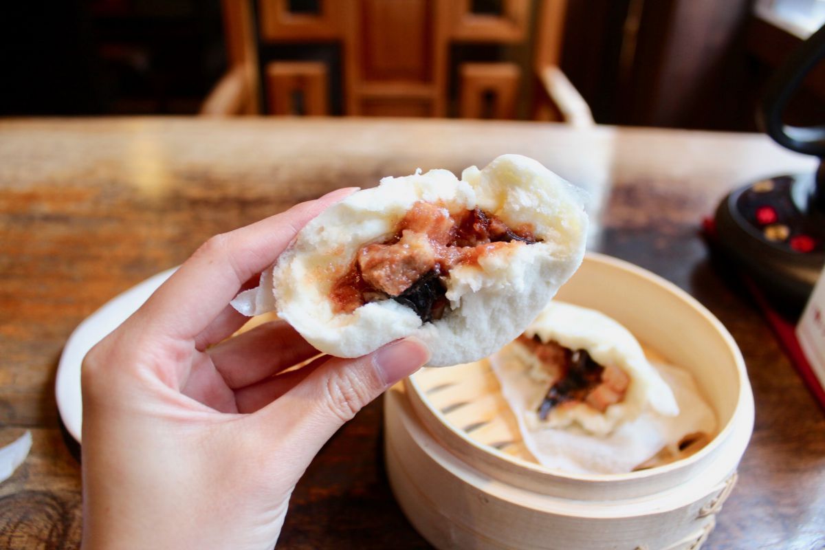 3つの中から選んだ「阿媽肉まん」は、食べてみてびっくり!普通の肉まんとは違って、角切りの豚バラ肉、黒きくらげが…!独特なまろやかな風味のひみつは、腐乳(ふにゅう)という、お豆腐を発酵させた中国食品なんだそう。中華街ではいろんなお店の中華まんが食べられますが、いつもとちょっと違った味を楽しみたい!という方にもおすすめです。