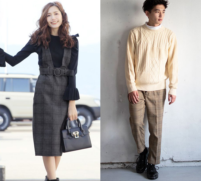 そんなときには、こっそり流行のシミラールックをとりいれたカップルコーディネートがおすすめ。ポイントは色違いのニットに、色違いのチェック。ふたりで並んでいてもわからないほど、さりげないシミラールックはおしゃれの上級者テク。ビュッフェでもっと仲良くなっちゃいましょう♪