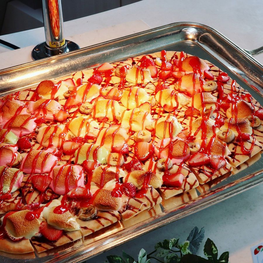 マシュマロとピザの組み合わせは相性良く、いちごの酸味で全体を爽やかにしています。
