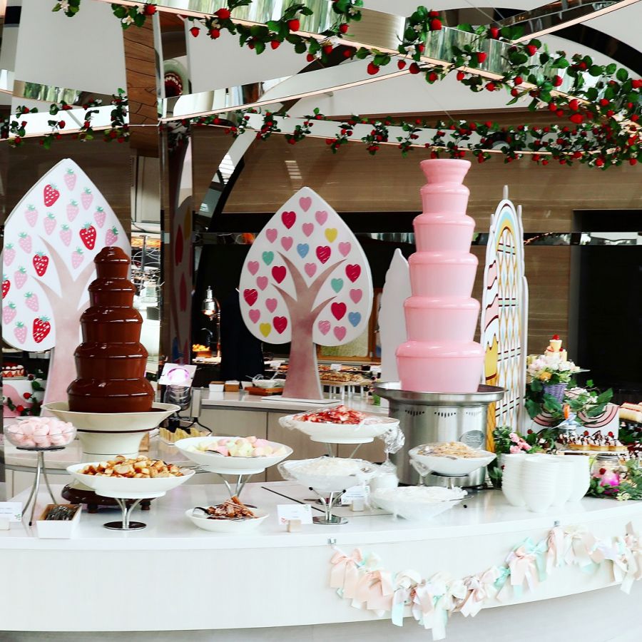 デザートビュッフェの定番のチョコレートファウンテンも2種類あり嬉しい。
