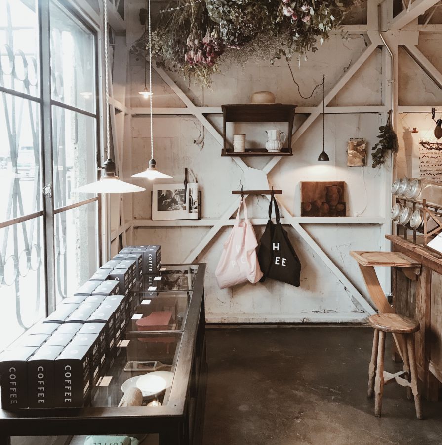 「Roastery DAUGHTER」は、アンティークやドライフラワーに囲まれた素敵な空間。「WIFE&HUSBAND」に通ずる雰囲気があります。
