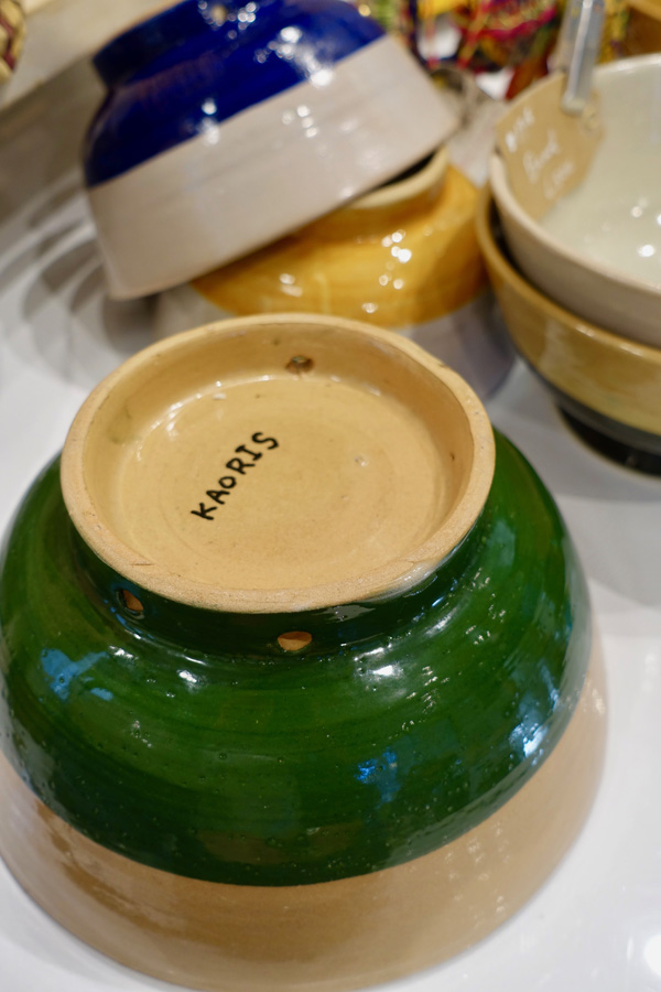 同じくモロッコ・フェズ地方の伝統食器も取り扱っています。モロッコの歴史ある都市フェズは、陶器の名産地としても有名だそう。注目すべきはkaorisオリジナル商品であること!ポイントカラーが1色だけ配されたシンプルな器はどんな料理にも合い、食卓を彩ること間違いなしです。小ボウルは3200円から購入することができます。