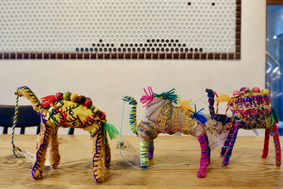 お店に入るとまるで雑貨のセレクトショップかと錯覚するほど、ハイセンスな小物が並んでいます。聞くと、オーナー・kaoriさんが大好きなモロッコを訪れるたびに買い付けてくる雑貨だとか。ユニークな置物は、モロッコのベルベル族が手作りした「キャメル」(3200円)。よく見ると、ひとつひとつ刺繍も形も違い、見る角度によって印象が変わるんです。なかなか日本ではお目にかかれない色合いや素材感…、ファッション好きな友人へ贈ったら喜ばれそう!