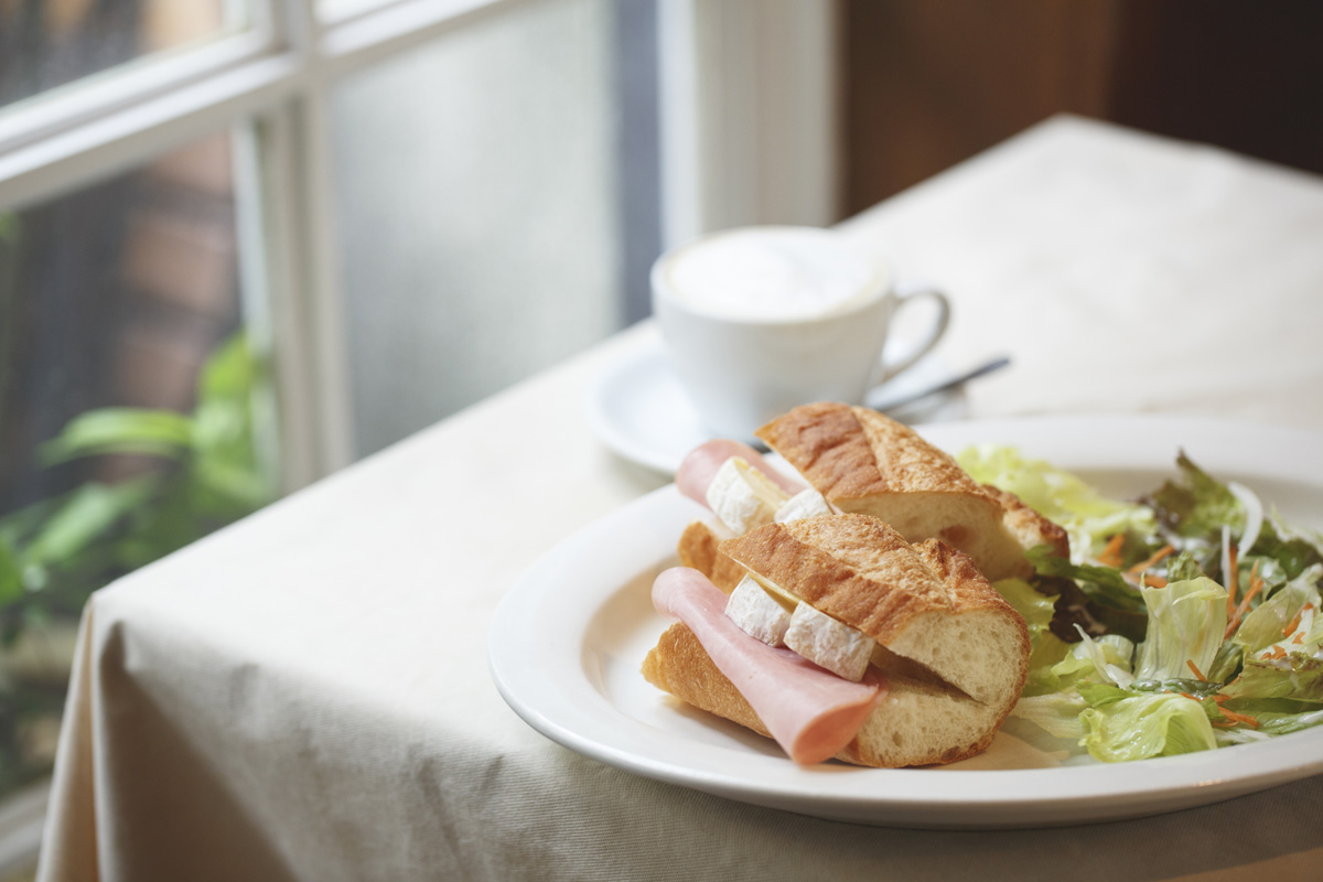 長嶌さん1人で営業しているということもあり、ラインタイムにはなるべく待たせずに提供できるメニューが中心。気軽に立ち寄ってもらいたいとの思いからです。定番のジャンボンフロマージュ(750円)は、カマンベールチーズとハムをバゲットでサンド。シンプルながらも、素材それぞれの味が引き立つひと品です。