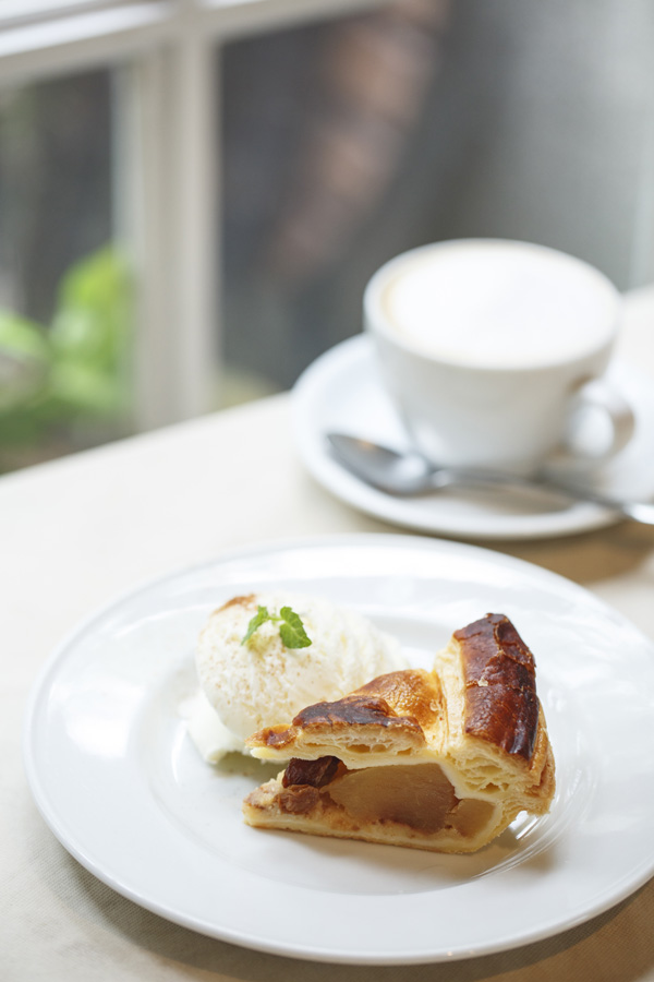 カフェメニューも提供する「オー・ジャルダン・ドゥ・ペリー」。アップルパイバニラアイス添え(600円)は、ブレーメンから仕入れ、お店で焼き上げたアップルパイとひんやりアイスが溶けて混ざり合うやさしい味わい。
