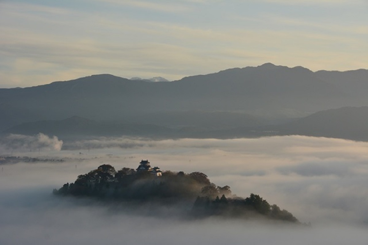 四方を山に囲まれた大野盆地の亀山にそびえる大野城は、麓の城下町が雲海に包まれ、亀山だけが浮かんで見える日に神秘的な「天空の城」に姿を変えます。雲海の出現条件は、気象条件が大きくかかわりますが、10月~4月末頃、明け方から9時にかけてが多いそう。小松空港から車で1時間と少しのアクセスなので、この幻想的な体験を味わいに一度はトライしてみては。