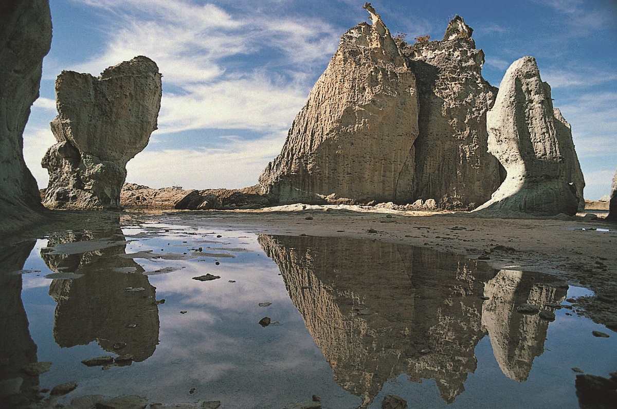 南米パタゴニアは、アルゼンチンとチリにまたがる、雄大な大自然で有名なエリア。そんなパタゴニアに来たかのような大自然が望めるのが、青森県佐井村にある「仏ヶ浦(ほとけがうら)」。自然が作り出したものとは思えない、不思議で巨大な奇岩が並び、海と空の青にそびえる姿は、別世界に迷い込んだような感覚に包まれます。