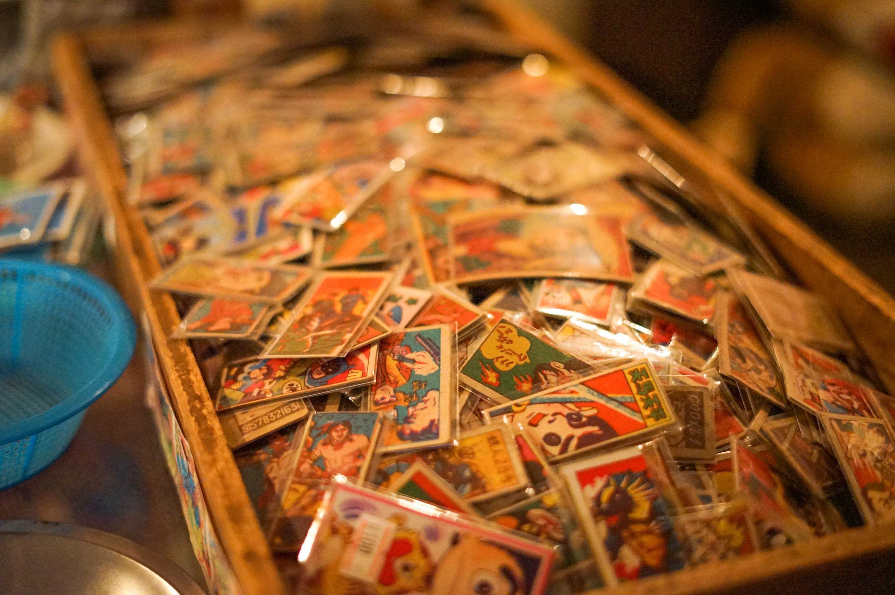 店内には、めんこを集めたコーナーも。神谷さんは、テレビ番組でめんこの指導をするほどの腕前。めんこをまたいで投げる「神谷投げ」なる技もあるのだとか。