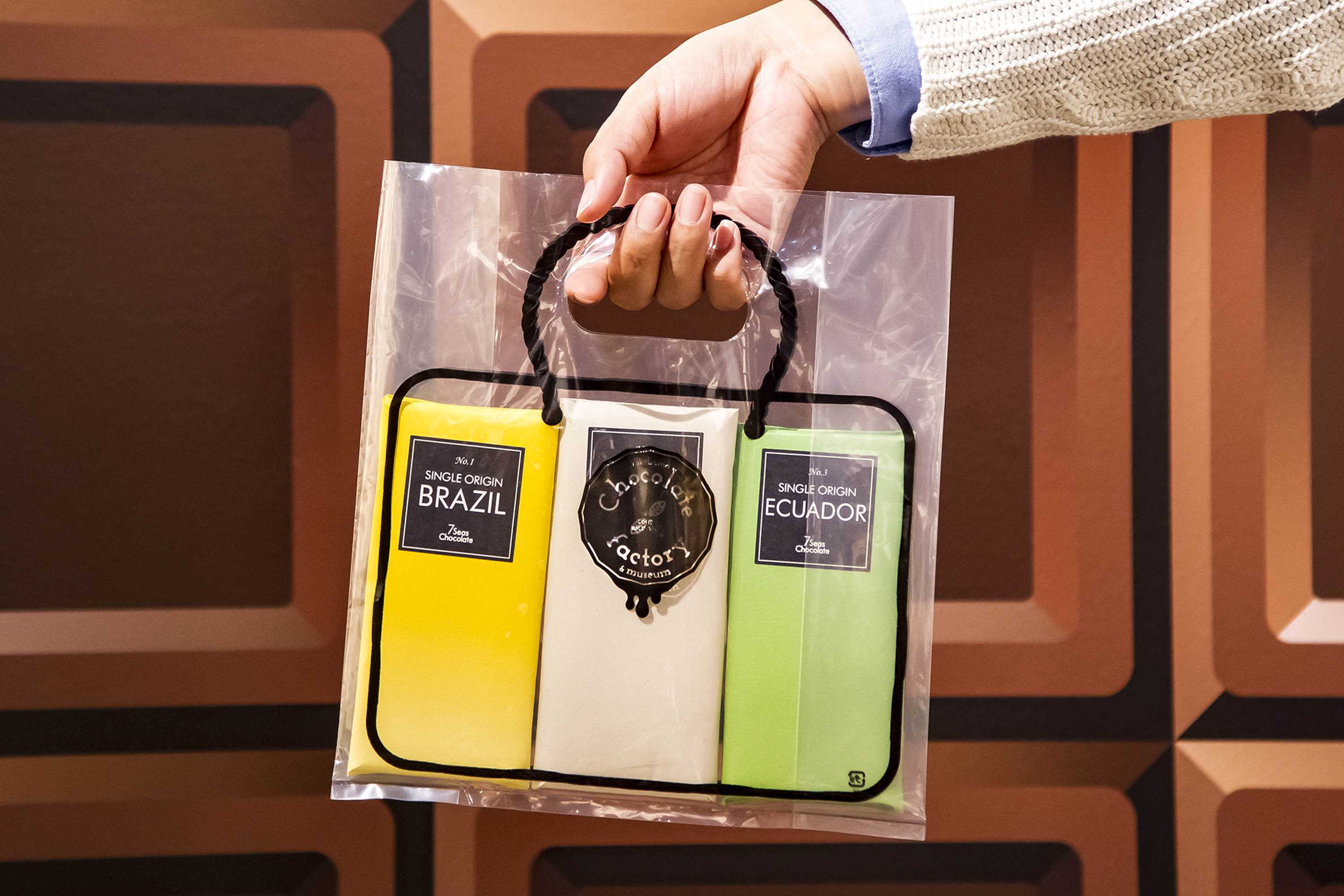 ショップにはファクトリーで作られたオリジナル商品がずらり。7Seas Chocolateは世界の海に隣接する国々の食材を織り込んだ板チョコ。カナダのメイプル、ブラジルのコーヒー、イタリアのトマトなど、個性的な板チョコが19種類もあり、パッケージの美しさも目を引きます。