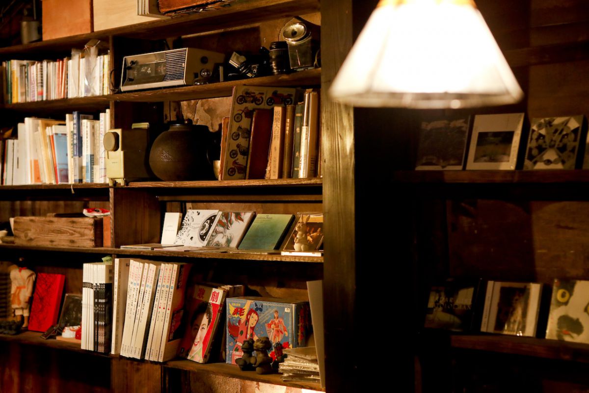 大きな棚にずらりと並んだ書籍は、常連さんや知り合いから譲り受けたものも多く、マンガから実用書まで幅広く揃います。