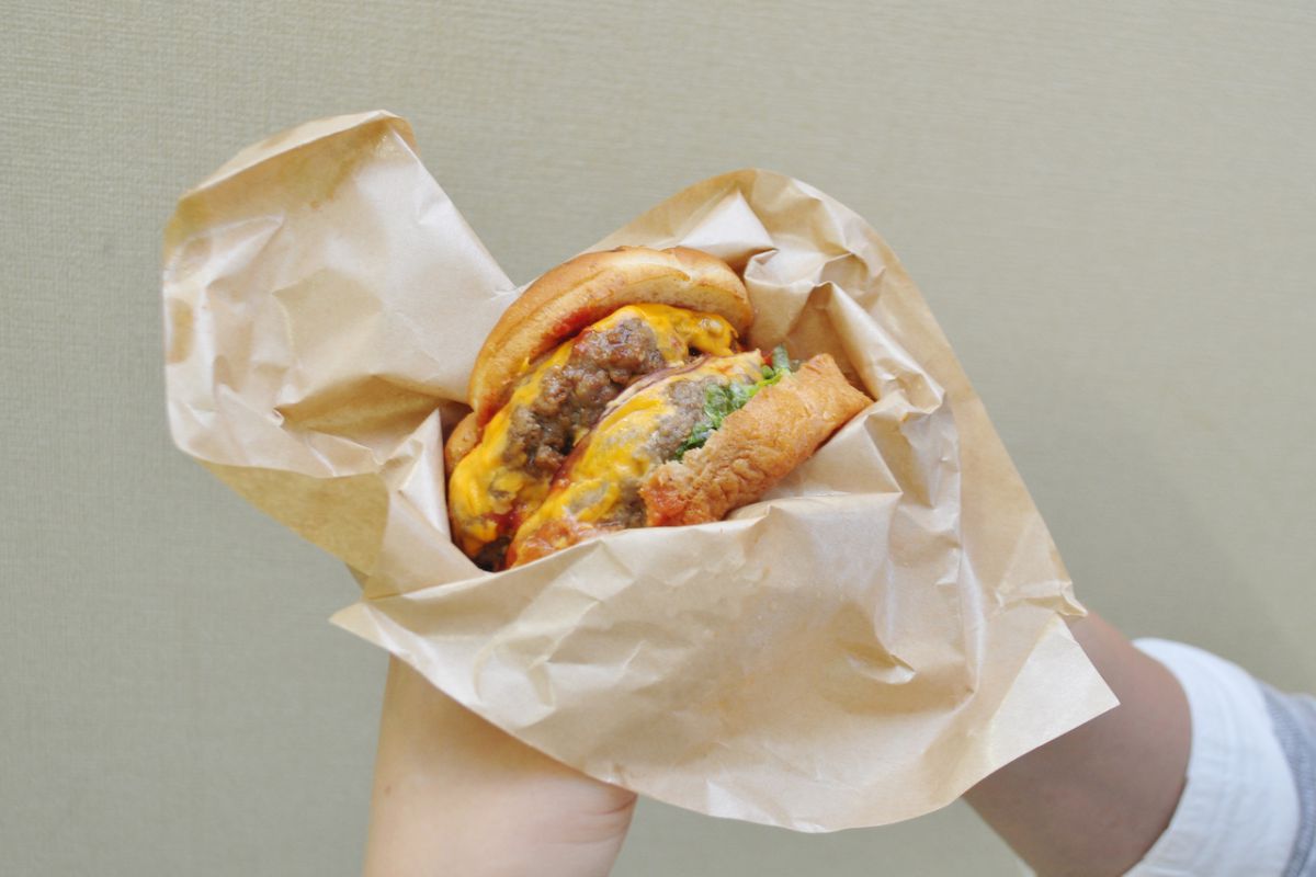 腹ぺこで行きたい。高さ20cmの肉肉バーガーをガブリ!!