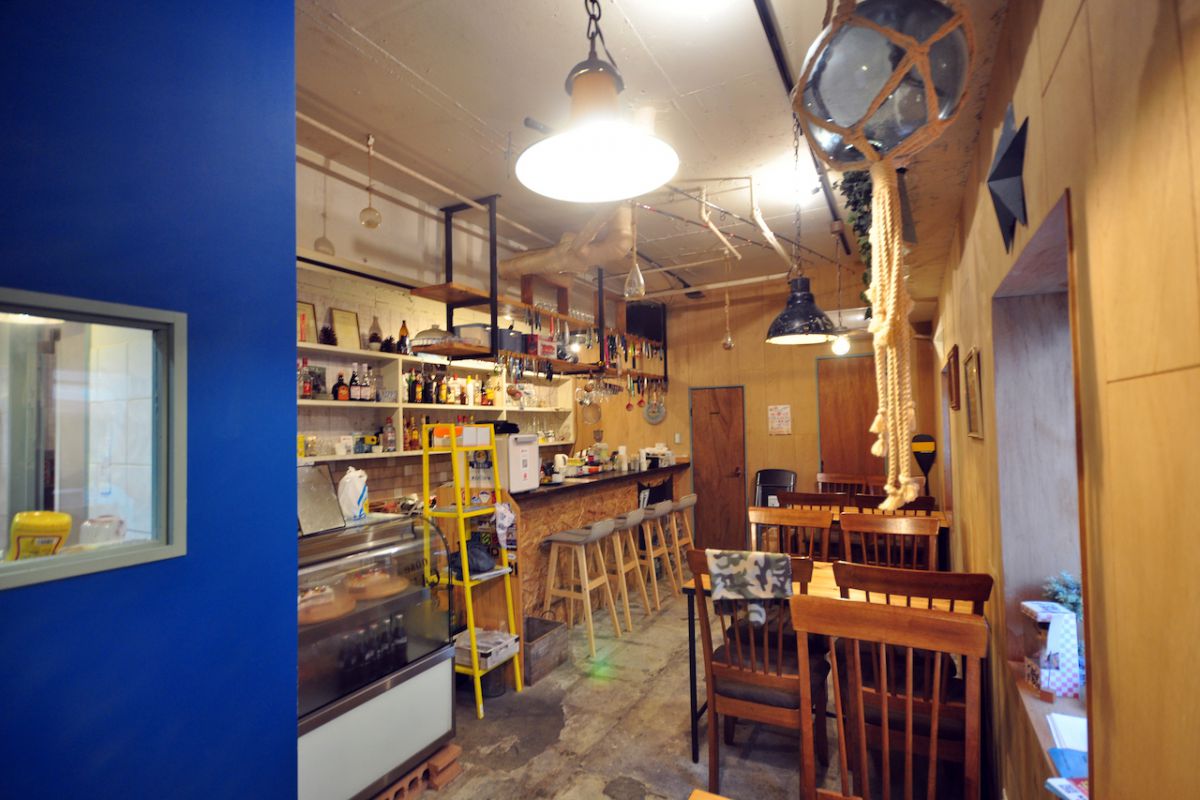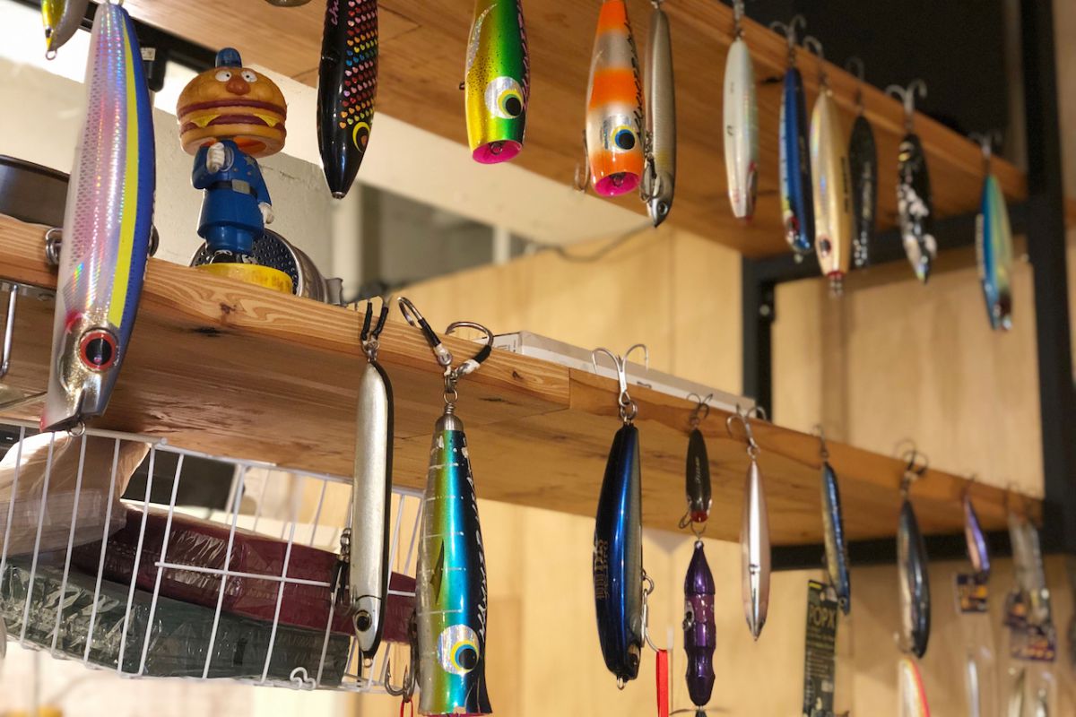 店内には釣り好きというオーナーらしく、ルアー釣りの道具や漁具でもある浮き玉などが飾られていて、海辺のリゾートな雰囲気も感じられます。そんなオーナーがアメリカで食べた「ガツンとお肉!」なバーガーを再現したというオリジナルのハンバーガーをいただきます!