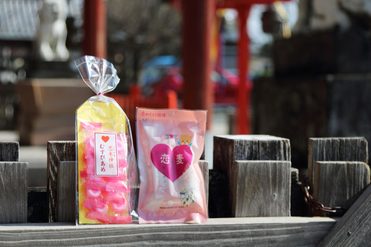 ハートの金太郎飴(400円)やこいのき最中(500円)などのお菓子もあります。友達におみやげとして渡せば、恋のパワーをおすそ分けできるかも。