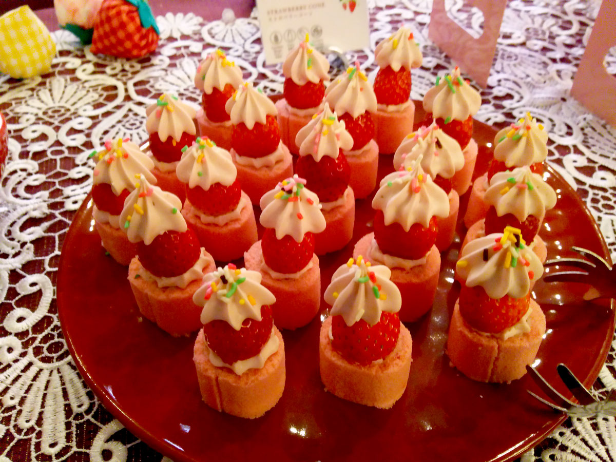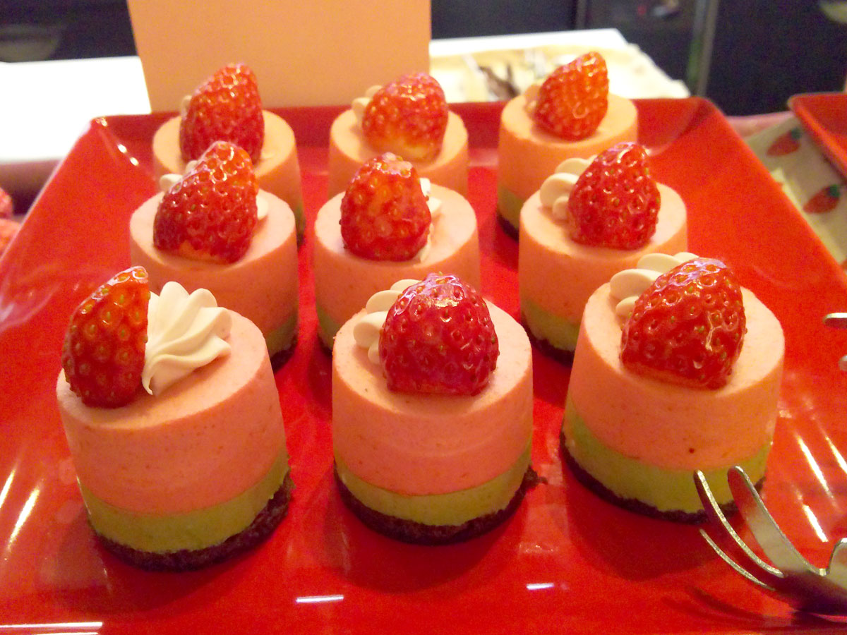 今回ご紹介する「シャンパン・バー」のスイーツビュッフェでは、タルト、ムース、ロールケーキなどの21種類のスイーツでいちごを使用。加えて、いちご食べ比べコーナーでは「あまおう」、「とちおとめ」など、常時5種類のいちごが食べ放題!いちご好きにはたまりません。軽食メニューにもいちごがふんだんに使われていて、まさにいちごづくし!