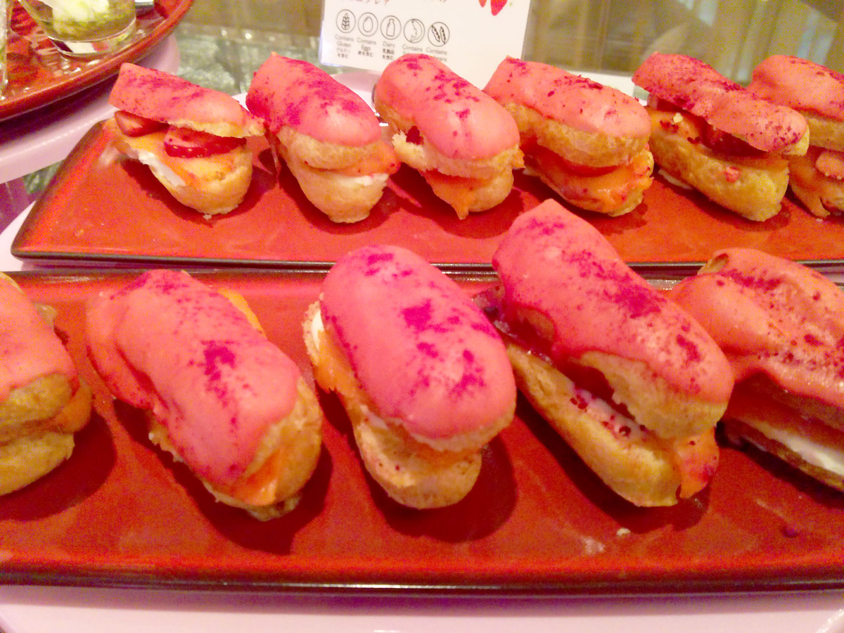 「ストロベリーエクレア」だって、親指ほどのミニサイズ。甘酸っぱいストロベリーチョコレートがたっぷりかかっていて、サクッとしたとした軽い食感でいくつでも食べられそう。