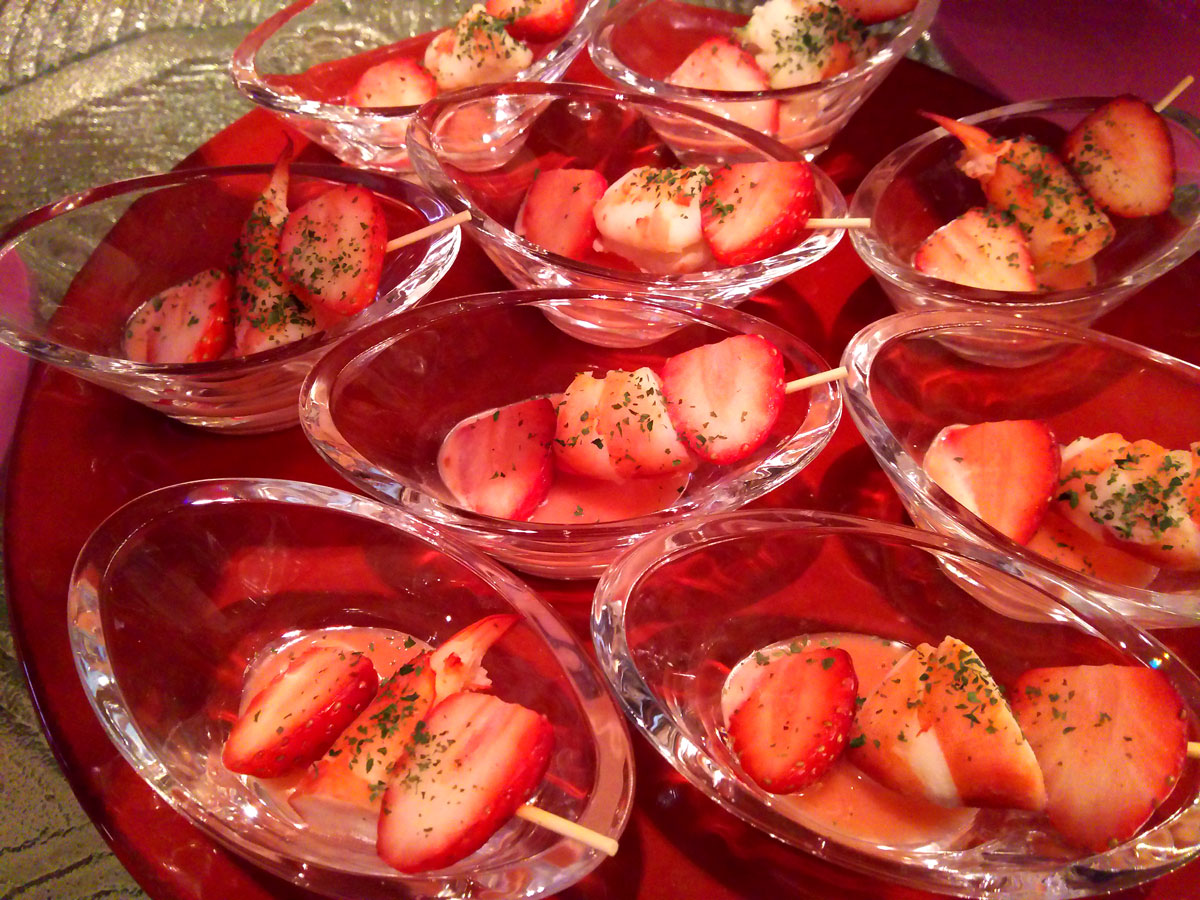 「海老とストロベリーのアジアンカクテル」は酸味が強く、シャンパンと一緒に味わいたい一品。