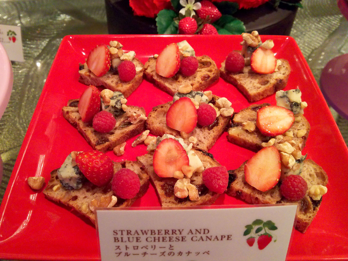 「ストロベリーとブルーチーズのカナッペ」は、ブルーチーズのほろ苦さと、いちごの甘さのマリアージュがクセになりそう!