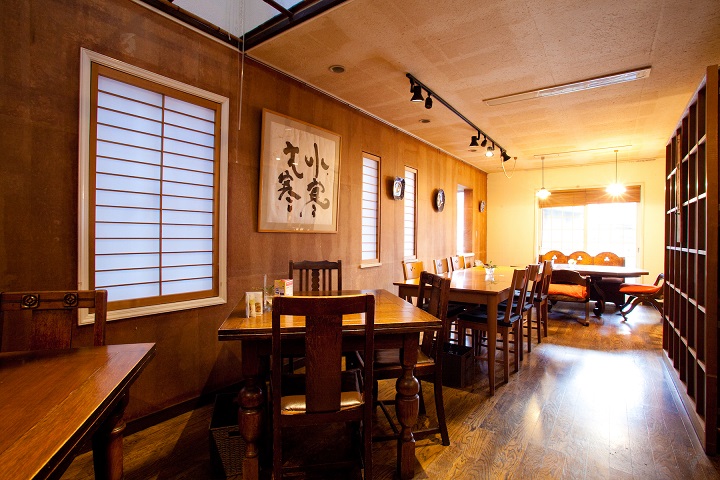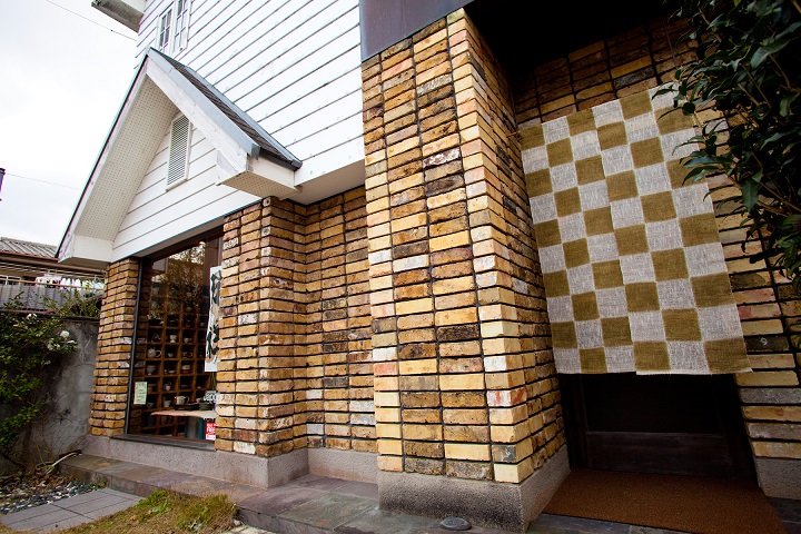 「花梓侘」のある建物は、住宅街のなかの一軒家。周囲に溶け込んでいるので見逃し注意です。店先は古伊万里や作家モノの和食器を扱う器さん、食事は玄関を上がって、奥のリビングでいただきます。