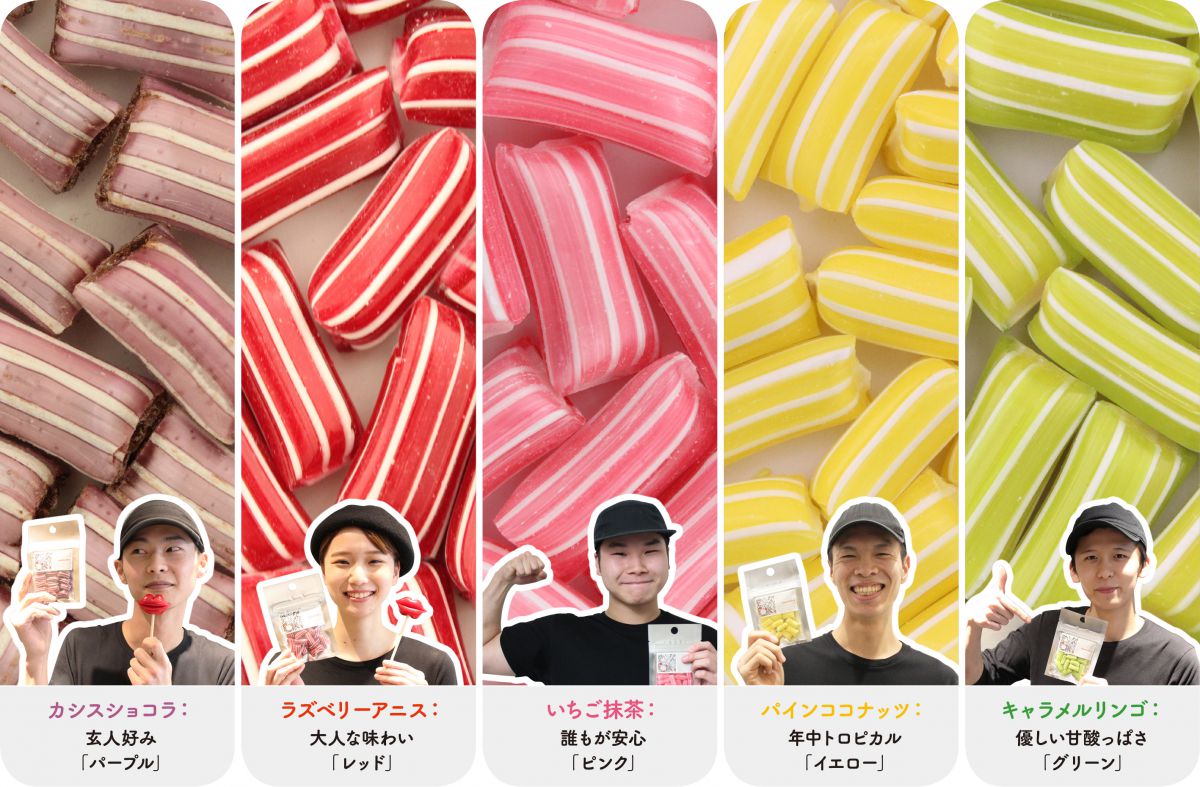 パパブブレの職人さんの技が光る「チョコレートキャンディ」は、チョコレートとサクッとした飴が17層に重なり合うほかにはない大人の味わい。今年のバレンタインのフレーバーは個性的な「カシスショコラ」「ラズベリーアニス」「いちご抹茶」「パインココナッツ」「キャラメルリンゴ」の5種類。色もカラフルでプチギフトにも最適です。