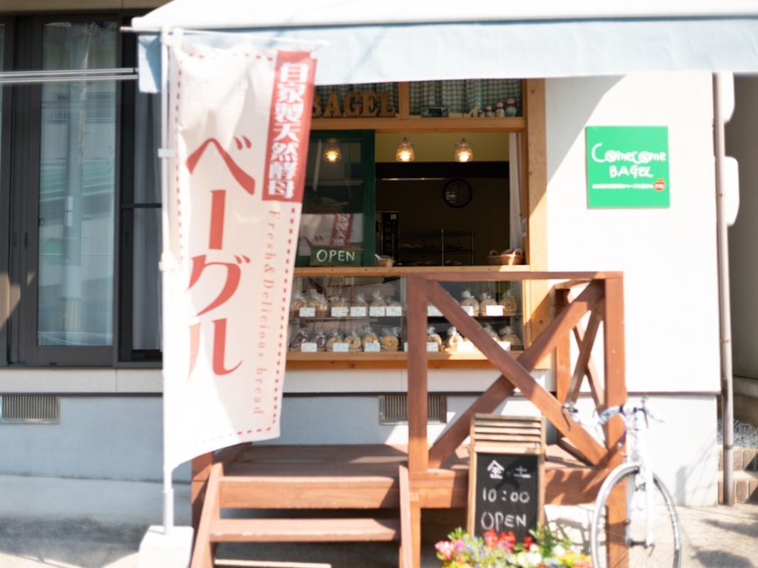 広島市安佐北区落合の、のどかな住宅街にたたずむ小さなベーグル屋さん、「ComeComeBAGEL(カムカムベーグル)」。天然酵母から自家製という、こだわりたっぷりのベーグルは、地元の方はもちろん、遠くから買いに来る人もいるほどの人気!季節によってベーグルの種類はさまざまなので、何度行っても楽しめます。噛めば噛むほど味わえる、生地の甘みをぜひ堪能してみてください。