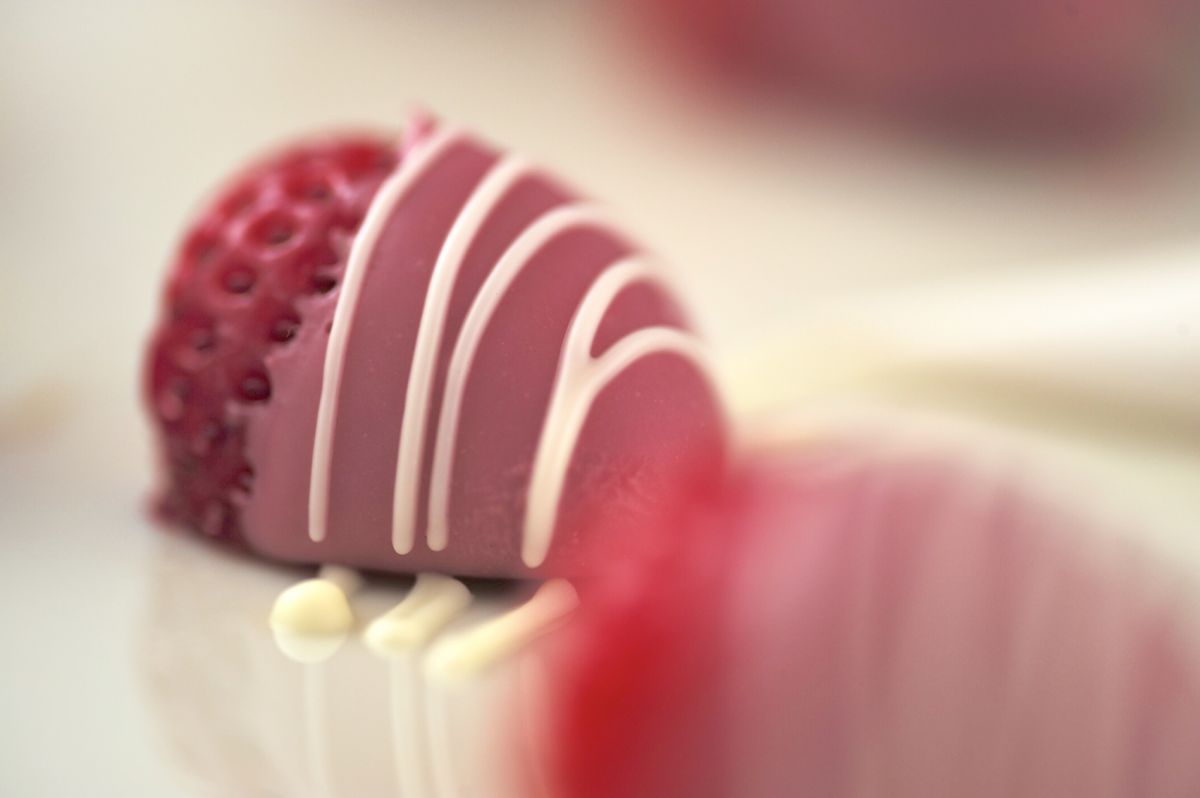 ZOOM UPするとこんな感じ!このルビーチョコレート、着色料もフレーバーも入っておらず、天然のカカオ豆そのものの色だそう。味もベリーのような爽やかな酸味を持つカカオ豆だそうで、早く試してみたいです。