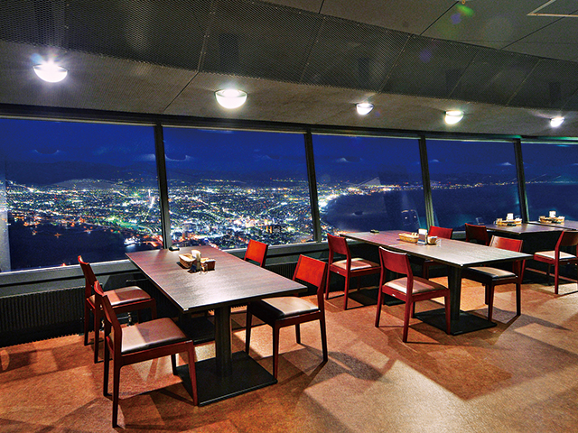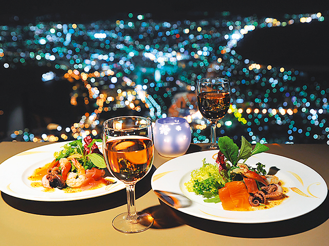 デートの締めくくりは、ため息が出るほど美しい夜景とおいしい料理で決まり!定番だからこそロマンチック気分がさらに跳ね上がります。函館山展望台2階という絶好のロケーションに立つレストランのディナーコースは、1日3組限定でスペシャル感もたっぷり。十勝牛や新鮮な海の幸などを、まばゆいばかりの夜景を見ながら堪能できます。